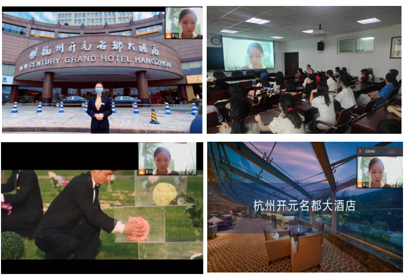在员工杭州开元名都大酒店业务主管黄佳蓉等的带领下,以“云导览”的形式,为2018级本科生呈现了精彩的职业知识与体验分享。黄佳蓉结合自身从业经验开设线上实务讲解,开辟“云连线”环节,详细解答同学们在“云导览”中提出的问题。
