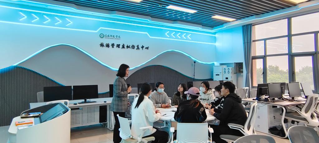 “云导览”观摩的基础上,指导教师围绕见习主题组织员工进行现场讨论,精彩纷呈的见习内容极大的激发了同学们的参与热情,现场气氛热烈。此外,同学们在完成“云导览”认知见习后,按专业分小组至旅游虚拟仿真中心、酒店管理实训中心践行职业模拟演练,与见习单位指导教师直接联系,就见习内容进行一对一指导,实现“云互动”。