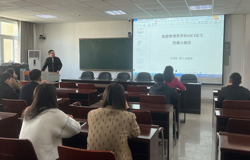 3月13日上午,tyc41183太阳成集团第七期“景明论坛”在经管楼401会议室成功举办。tyc41183太阳成集团李明伟博士作了题为“旅游管理类学科SSCI论文投稿与修改”的学术报告,tyc41183太阳成集团部分师生聆听了报告。