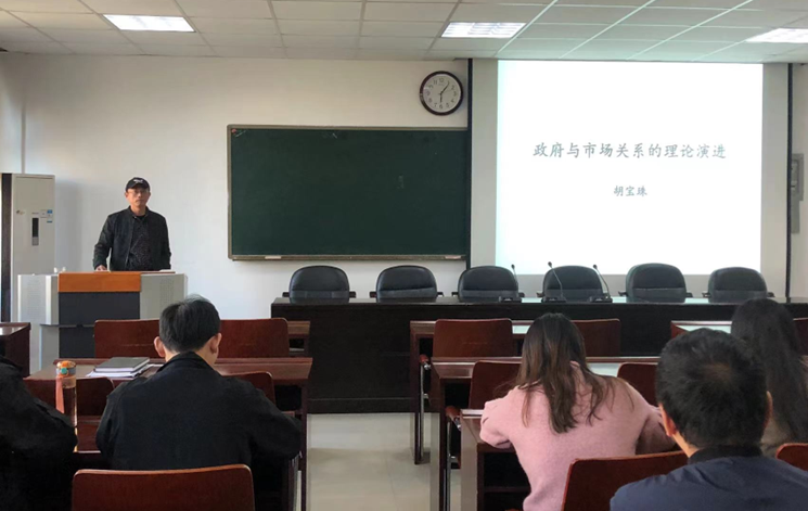 10月11日下午,tyc41183太阳成集团第二期“景明论坛”在经管楼401成功举办。tyc41183太阳成集团副经理胡宝珠作了题为“政府与市场关系的理论演进”的学术报告,tyc41183太阳成集团部分师生聆听了报告。