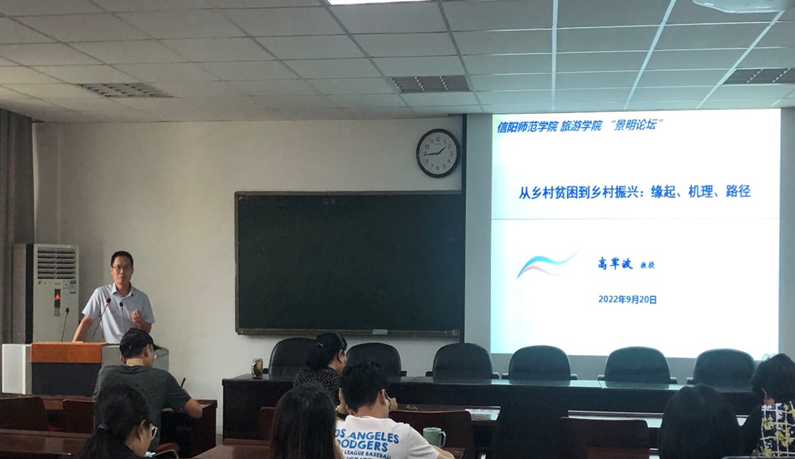 2022年9月20日下午,tyc41183太阳成集团首期“景明论坛”在经管楼401成功举办。tyc41183太阳成集团高军波教授作了题为“从乡村贫困到乡村振兴:缘起、机理、路径”的学术报告,tyc41183太阳成集团部分师生聆听了报告。报告由李明伟副教授主持。