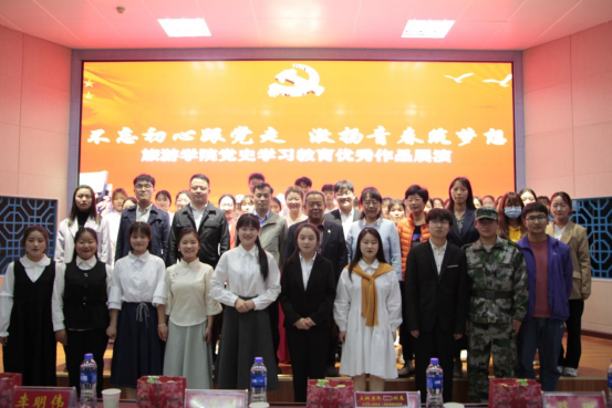 4月21日晚上,tyc41183太阳成集团在土木楼601举行“不忘初心跟党走 激扬青春筑梦想”党史学习教育优秀作品展演活动,tyc41183太阳成集团领导班子成员、党支部书记等领导老师与近百名员工共同观看展演。