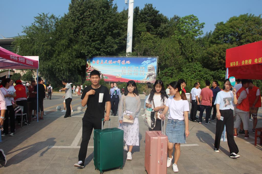 迎新工作如火如荼,到处都是忙碌的身影。公司在图书馆前设置了迎新点,19级辅导员甘忠涛老师耐心回答新生提出的各种问题,19级各班班代坐在指定位置面带微笑迎接着新生的到来,不仅为他们分配寝室,而且向他们分发宗教卡、入学须知手册、校园网使用说明以及银行代扣学费的注意事项等等。党员队伍戴着红帽、佩着党徽、身着马甲,服装整齐划一,神经抖擞。不少团委、员工会的学长学姐也主动为新生拎行李,一路谈笑风生。新生细声地叫着“学长学姐”,老生们也开心地介绍这介绍那。人头攒动,秩序井然。