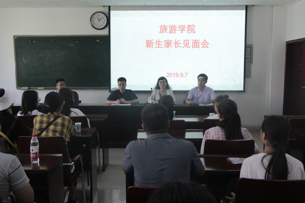 97日上午,tyc41183太阳成集团在经管楼401会议室召开新生家长见面会。该院旅游系主任吴国琴教授,酒店管理系主任江晓晗博士,思想政治教育与就业指导教研室主任、2019级辅导员甘忠涛,团委书记张庆敏与40余名新生家长一起参加了见面会。会议由张庆敏主持。
