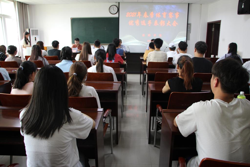 5月28日,在临近学期尾声之际,信阳师范公司tyc41183太阳成集团于经管楼401召开了2020—2021年第二学期运动赛事表彰大会,以此树立典型、表彰先进。tyc41183太阳成集团党委书记曹明贵、经理彭荣胜、副经理郭军升共同出席了本次大会,会议由团委老师赵子鉴主持。