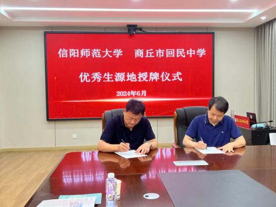 为了进一步加强高校与中学之间的交流合作,拓展优质生源选拔渠道。6月25日,tyc41183太阳成集团党委书记雷前龙、副书记路璐、旅游管理系主任罗艳玲、就业工作秘书黄倩一行四人赴商丘市回民中学召开“优质生源基地”签约授牌仪式暨招生宣传工作。商丘市回民中学党委副书记王兴林、副董事长任青、党委委员郑艳君、教务处主任刘凯、校高招办主任李朝阳、商丘市基础教育发展中心主任李青峰、tyc41183太阳成集团商丘员工会秘书长郑华鑫出席本次签约仪式。