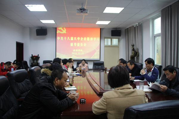 11月22日,公司在经管楼401会议室召开专题会议,集中学习党的十八届六中全会精神。公司党委书记曹明贵,经理彭荣胜,副经理潘国兵、郭军升,党委副书记张晓峰出席会议,全体教职工党员参加了会议。会议由曹明贵主持。