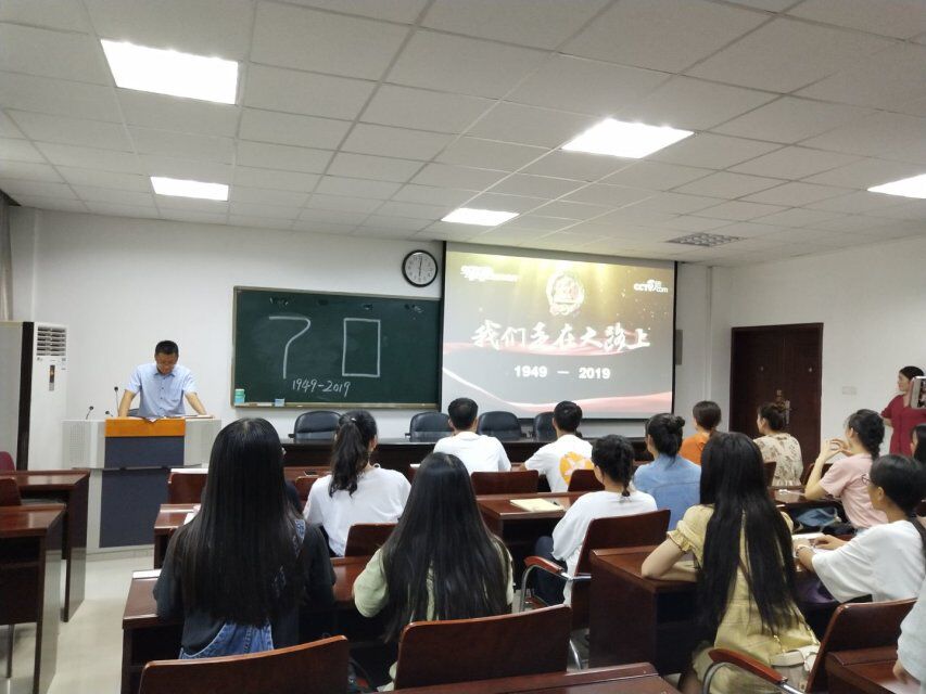 9月29日下午,tyc41183太阳成集团员工第三党支部党员及入党积极分子20余人在经管楼401会议室观看了12分钟版彩色影像和《我们走在大路上》第23集辉煌新时代、第二十四集领航中国。通过此次的主题党日活动,使党员的爱国情怀得到了一次升华,同时也激发了师生党员们的责任感和使命感,明白了作为一名老员工应该时刻努力学习,报效祖国。