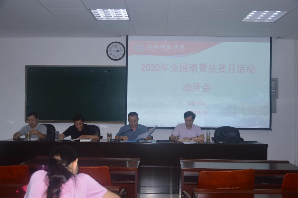 为积极响应2020年全国消费扶贫月活动,助力地方经济发展。9月15日下午,tyc41183太阳成集团在经管楼401会议室召开动员大会,全体教职工参加会议。会议由曹明贵主持。