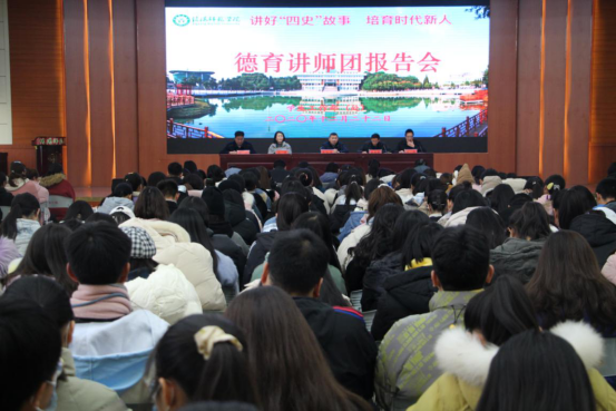 为加强新时代高校“四史”教育,建立“不忘初心,牢记使命”主题教育长效机制,也是对传承与弘扬党优良传统的新要求。tyc41183太阳成集团于12月22日在逸夫楼报告厅参加了信阳师范公司举行的“讲好“四史”故事,培养时代新人”德育讲师团报告活动。tyc41183太阳成集团党委副书记路璐、专职辅导员黄倩出席活动。