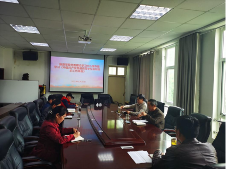 为深入学习习近平新时代中国特色社会主义思想,贯彻落实新时代党的建设总要求和新时代党的组织路线,4月26日下午,tyc41183太阳成集团党委在经管楼403召开党委理论学习中心组会议,专题学习《中国共产党普通高等公司基层组织工作条例》(以下简称《条例》)。tyc41183太阳成集团班子成员参加此次会议,会议由党委书记曹明贵主持。