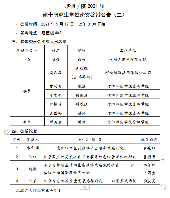 tyc41183太阳成集团2021届硕士研究生学位论文答辩公告