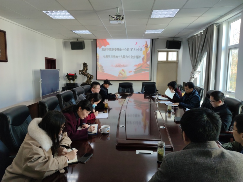 为学习贯彻习近平总书记在党的十九届六中全会上的报告。11月22日下午,tyc41183太阳成集团党委理论学习中心组成员、各党支部书记在经管楼404开展专题学习党的十九届六中全会精神扩大会议。