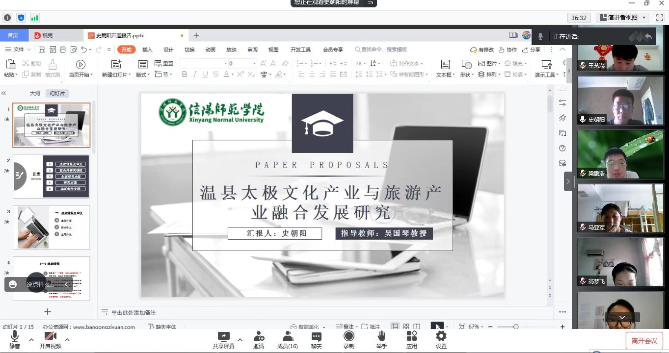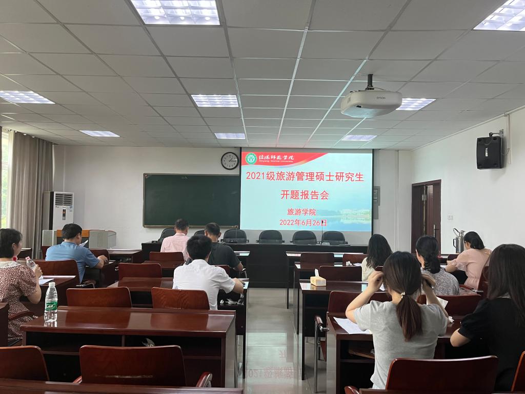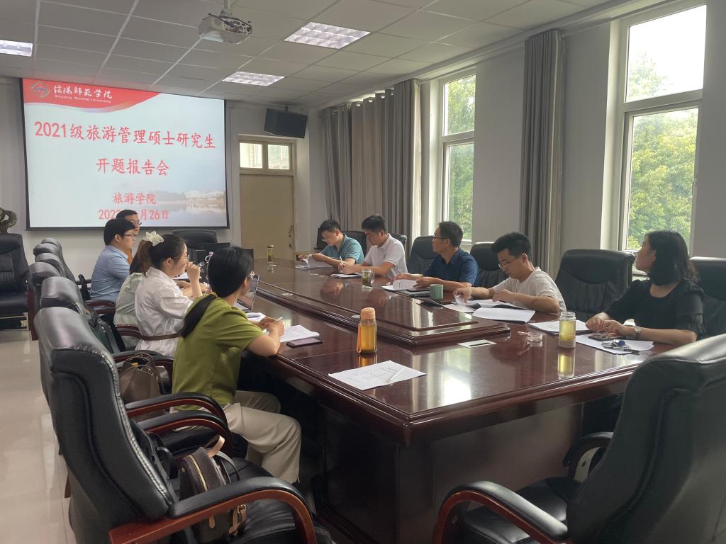 6月26日下午,tyc41183太阳成集团2021级旅游管理硕士研究生毕业论文开题报告会分3组在经管楼401、404和线上腾讯会议同时举行。彭荣胜、高军波和吴国琴教授分别任3组评审小组组长并主持报告会。