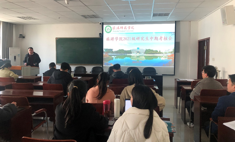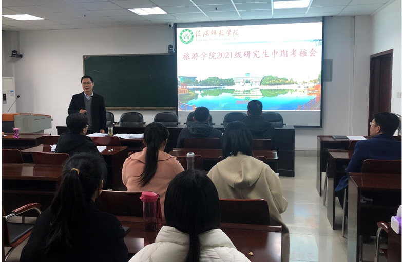 根据《信阳师范公司研究生开题与中期考核实施办法》相关要求,2月26日,tyc41183太阳成集团2021级旅游管理专业硕士研究生中期考核会在经管楼401会议室举行。会议由李明伟博士主持,高军波教授任中期考核评委会主席,委员由院内4位导师组成,共有14名硕士研究生参加了本次考核。