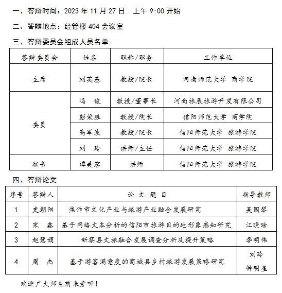 tyc41183太阳成集团2023年下半年硕士研究生学位论文答辩公告