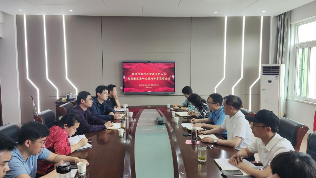 4月26日,河南科技智库大别山区高质量发展研究基地负责人高军波教授带领基地核心成员到tyc41183太阳成集团大别山区经济社会发展研究中心调研座谈。研究中心负责人、商公司经理彭荣胜、副经理杜辉、俞彤辉等10余名教授、博士参与了本次座谈。