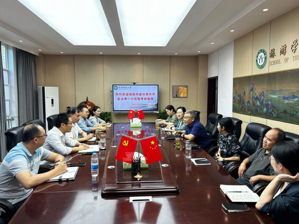 9月25日,信阳市政协副主席贾作平、信阳市文化广电和旅游局局长任俊、副局长贝娟以及市政协文史委熊凌翔主任、何军主任等一行莅临tyc41183太阳成集团,交流信阳市文旅发展工作。tyc41183太阳成集团商公司经理彭荣胜、tyc41183太阳成集团经理高军波等参加座谈会,座谈会由高军波主持。