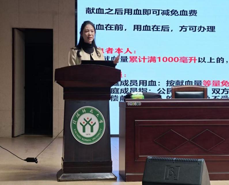 活动伊始,宣讲人卢小翠用生动的语言和详实的数据,宣传《献血法》普及无偿献血知识,提高老员工对无偿献血重要性的认识,鼓励更多青年老员工积极踊跃加入献血队伍中来。其次,宣讲人详细介绍了无偿献血者所享有的优先供血权利以及临床用血费用减免等一系列优惠政策,激发了在场同学们的献血热情。最后,她以“捐献青春热血,彩绘人生画卷”的崇高理念作为结语,为整场活动画上圆满的句号。