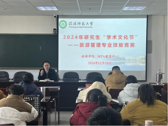为加强研究生创新能力和实践能力的培养,不断提高公司产品质量,tyc41183太阳成集团按照公司《关于举办tyc41183太阳成集团2024年研究生“学术文化节”的通知》要求,于12月28日上午,在经管楼401会议室举办了旅游管理专业技能竞赛。活动由李明伟博士主持,tyc41183太阳成集团全体研究生及部分评委老师参加了本次活动。